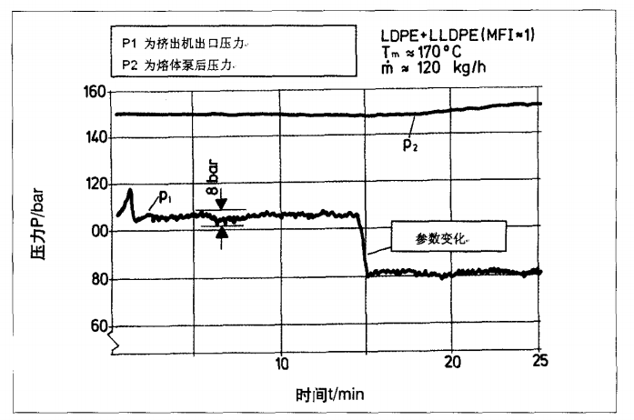 圖一 安裝海科熔體泵前后的壓力變化情況